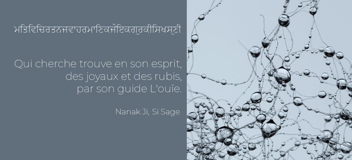 Les pratiques respiratoires, le chant, l'écoute et l'inflexion intérieure soulagent et dénouent à la source le mal-être physique et émotionnel. Accorder ainsi notre être profond nous amène à cheminer vers la clarté et l'épanouissement personnel. Ce sont les fondements des enseignements de Naad Yoga selon l'école Nanakienne.