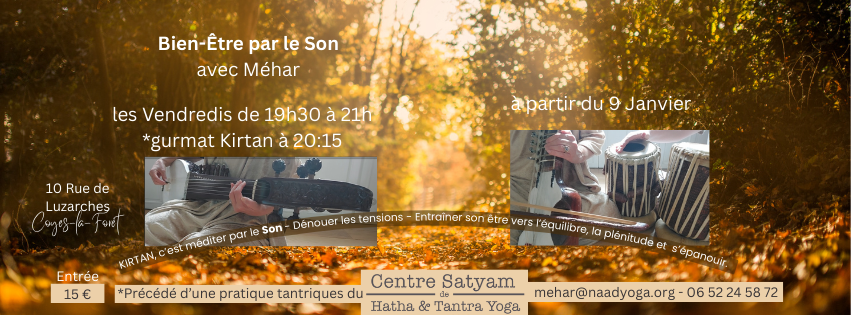 NAAD YOGA TEACHER TRAINING avec instrument, programme complet de la RAJ ACADEMY sur 3 ans Prochaine rentrée en 1ere année avec Méhar Kaur: Octobre 2026 / 2027 Inscriptions https://www.rajacademy.com/naad-yoga-teacher-training